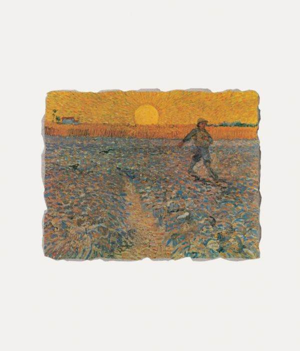 The work is carried out through the technique of Pictography, according to ancient methods and natural materials; it is handmade entirely in Umbria.