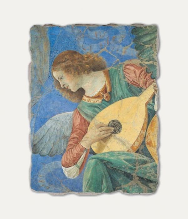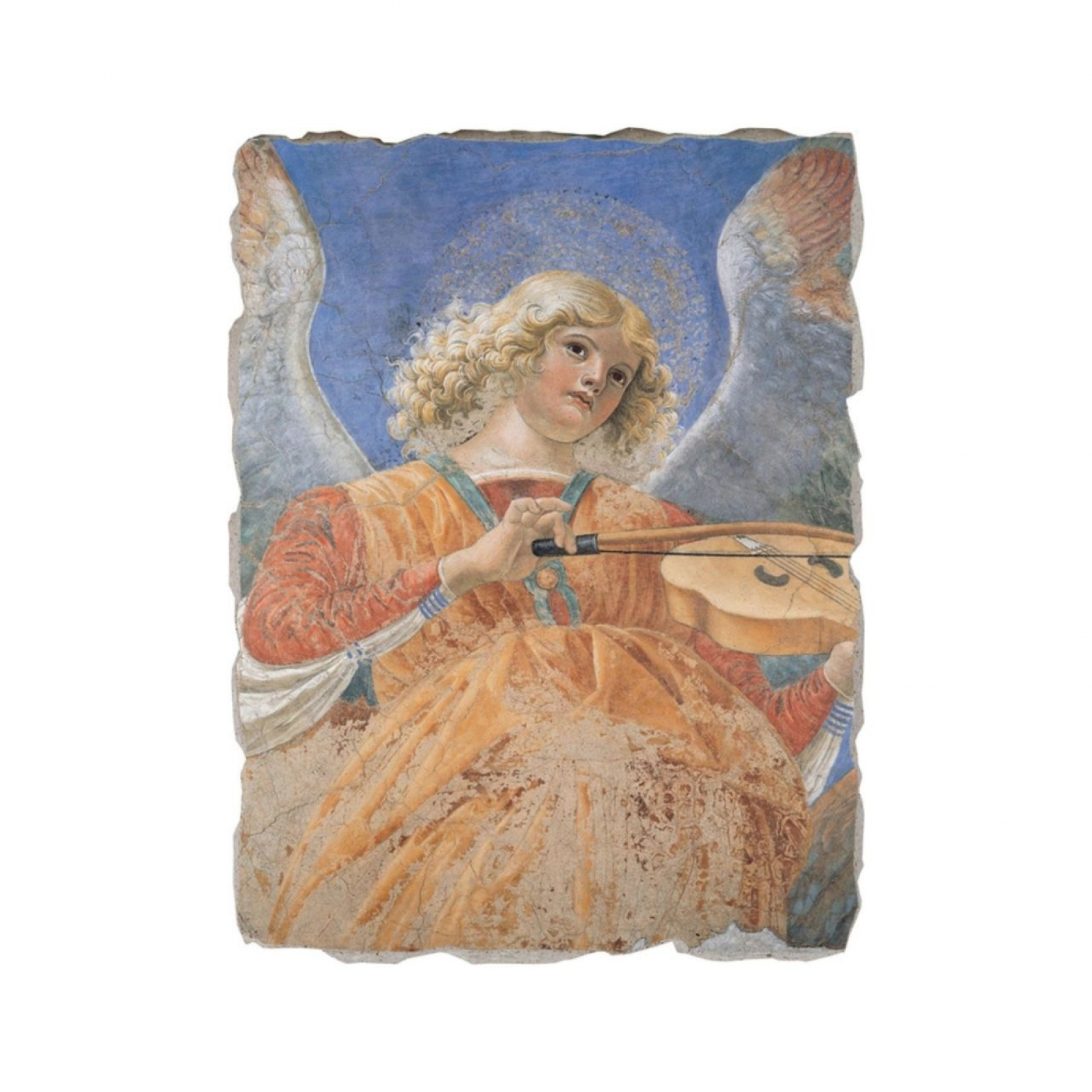 The Musician Angels are a group of detached frescoes by Melozzo from Forlì, datable to 1472, or, according to others, to 1478-1480, and from the vault of the apse of the Church of the Holy Apostles in Rome. The subject of the fresco decoration was the Ascension of Christ. The figure of Christ was so well highlighted and so admirable was he the effect of the foreshortening, which the Redeemer seemed to "leap through the time". He was surrounded by musician angels, apostles and other figures, all in a perspective "from bottom to top", that is, from bottom to top. The figures are monumental and integrate illusionistically with the background. The clear light that soaks the colors and lightens the shadows, together with the solemn volumes, derive from the models of Piero della Francesca, softened, however, by a greater naturalness, especially in the portraits, which was typical of the painter from Forlì.