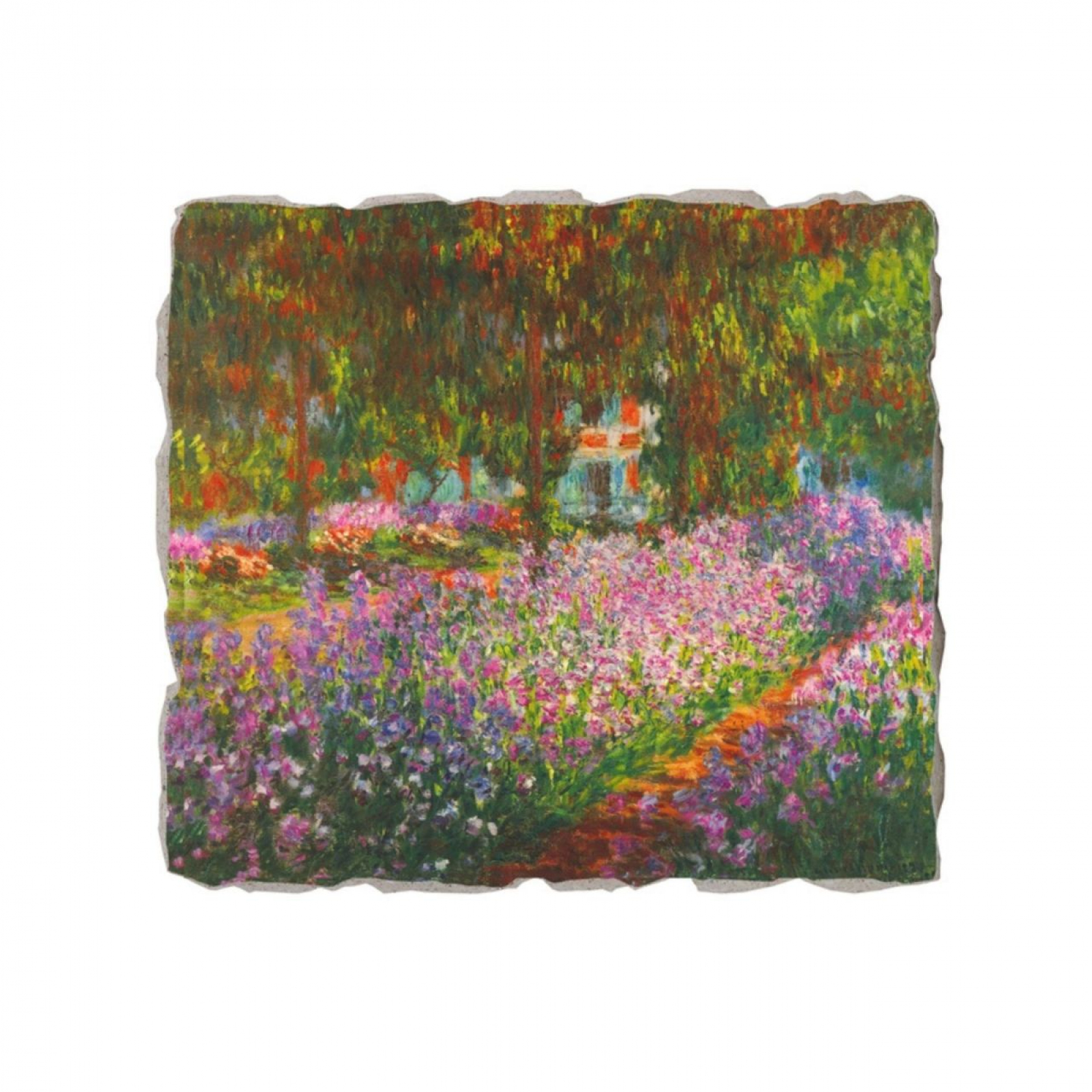 The contrast of the heliotropic palette and red paths is enlivened by a flower garden and that piece of opaque green that is visible in the background. Monet preferred not the chaotic arrangement of the flower beds, but their precise geometry. And here, the iris plants are planted in regular strips, like a layer cake with plums – a layer of dough, a layer of berries. A lovely color scheme leaves no room for black charcoal soot. In fact, this was the idea of the early Impressionists: no darkness and tar.