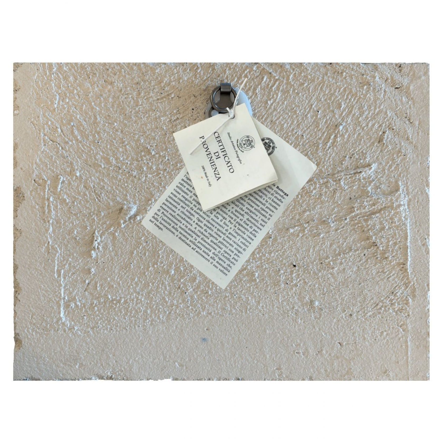 The work is executed through the technique of Pictography, according to ancient methods and natural materials; it is handmade entirely in Umbria.