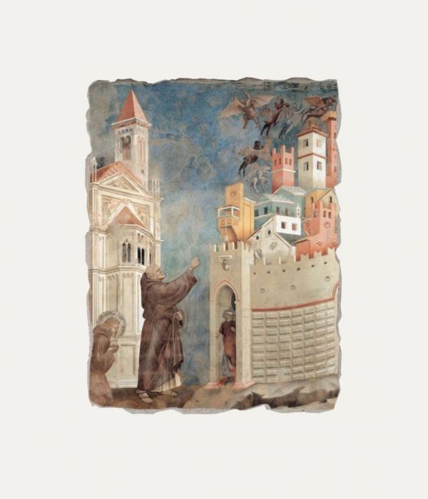 The work is made through the technique of Pictography, according to ancient methods and natural materials; it is handmade entirely in Umbria.