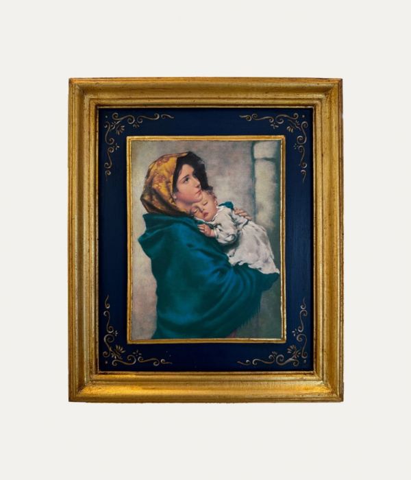 Secondo la tradizione che si è diffusa tra il popolo, Raffaello realizzò con tutta probabilità quest’opera durante un viaggio verso Velletri, dove vide una contadina intenta a cullare suo figlio; da questo momento di vita quotidiana, il pittore prese ispirazione per la posizione di due delle tre figure presenti nel quadro. La Madonna della seggiola di Raffaello interpreta pertanto la maternità della Vergine in una chiave intima e domestica, un’interpretazione in grado di suscitare un’ intensa reazione emotiva nel fedele. Nel dipinto la Madonna solleva una delle due gambe, coperte da un drappo azzurro, scivolando quasi in avanti, in modo da creare un ritmo circolare che sembra voler suggerire il dondolio del cullare. Essa china il capo verso il figlio, facendo toccare le due teste, e creando una situazione di intima dolcezza familiare anche se lo sguardo della Vergine si rivolge ai fedeli. Nel dipinto prevalgono toni caldi tra i quali spiccano alcune parti di colore freddo.