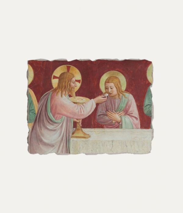 L'opera è realizzata attraverso la tecnica della Pictografia, secondometodi antichi e materiali naturali; è lavorata a mano interamente in Umbria.