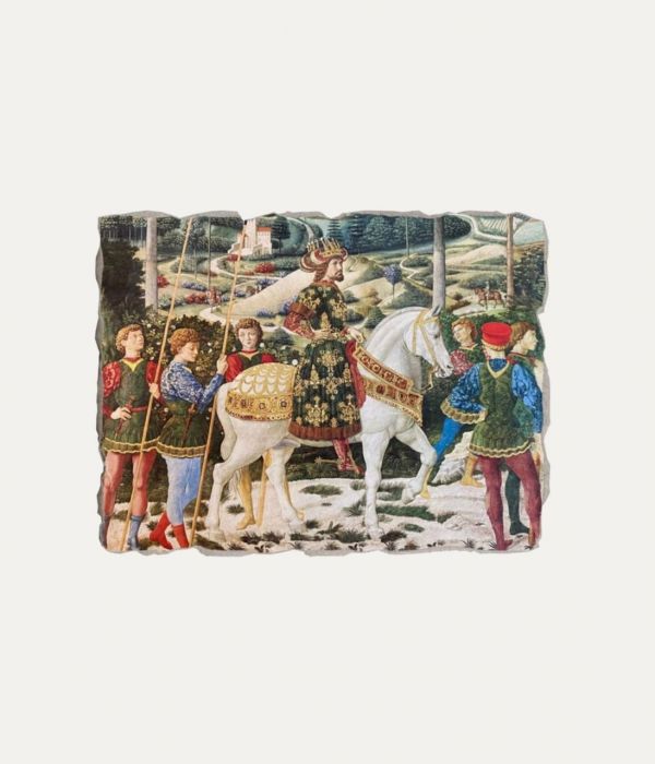 L'opera è eseguita attraverso la tecnica della Pictografia, secondo metodi antichi e materiali naturali; è lavorata a mano interamente in Umbria. Dotata di gancio a scomparsa per appendere e cavalletto da appoggio.