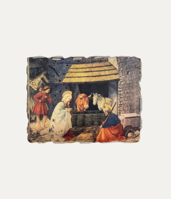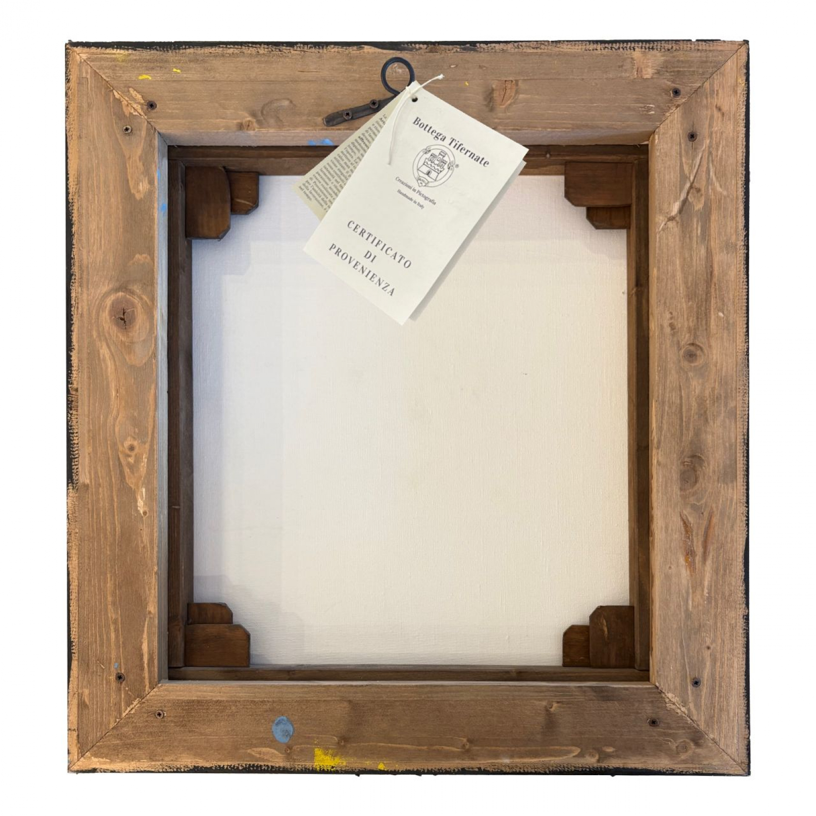 Pictografia ad olio su tela con bordo colore categoria "Essential". Ritocco con colori Maimeri. Tela in lino montata su telaio; gancio a scomparsa per montaggio a parete. Spessore telaio mm 18. Confezionato con elegante scatola bianca fondo + coperchio.