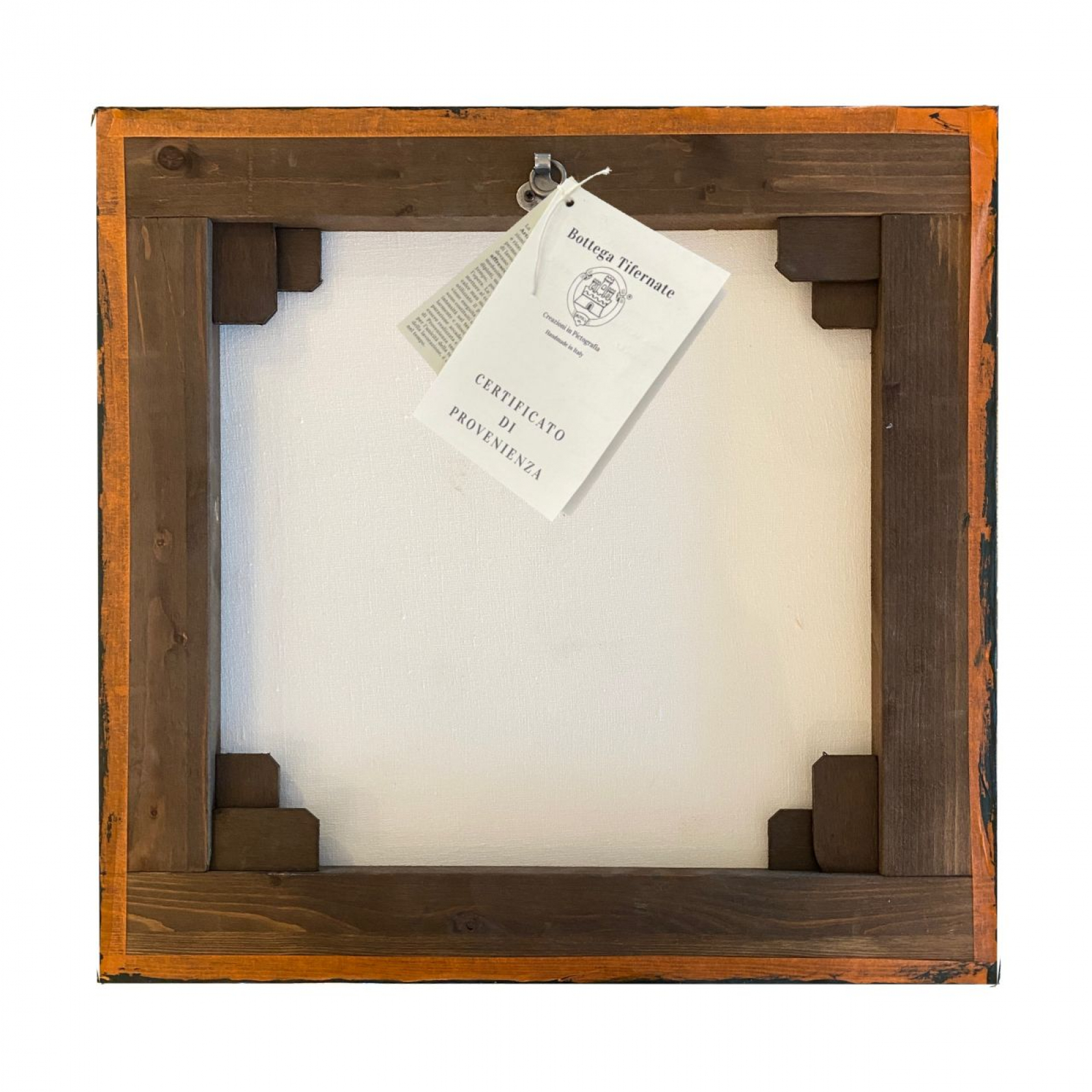 Pictografia a olio su tela con bordo colore categoria "Essential". Ritocco con colori Maimeri. Tela in lino montata su telaio; gancio a scomparsa per montaggio a parete. Spessore telaio mm 18. Confezionato con elegante scatola bianca fondo + coperchio.