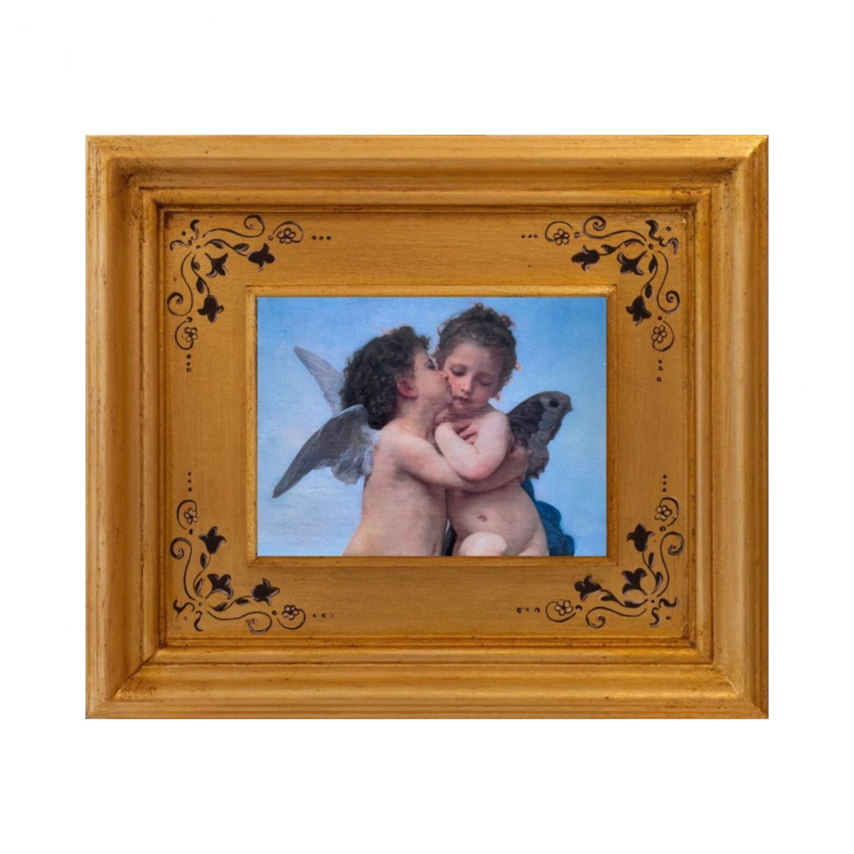 Nella versione di Bouguereau, Amore e Psiche sono due bimbi che si baciano. Amore, proprio come suggerisce la tradizione, ha delle bellissime ali piumate, mentre Psiche, per distinguersi dal suo amante, ha delle ali da farfalla. L'ambiente che li circonda è composto unicamente da tante nuvole, quasi come se si trovassero in Paradiso o sulla via per l'Olimpo degli dei greci. I due piccoli protagonisti sono felici e non hanno alcuna preoccupazione. Sono ritratti mentre sono appoggiati su un piccolo telo colore blu scuro che spezza i toni del paradiso che li circonda. Sono questi i particolari che rendono questo quadro una delle immagini di bambini che si baciano più belle di tutta la storia dell'arte.